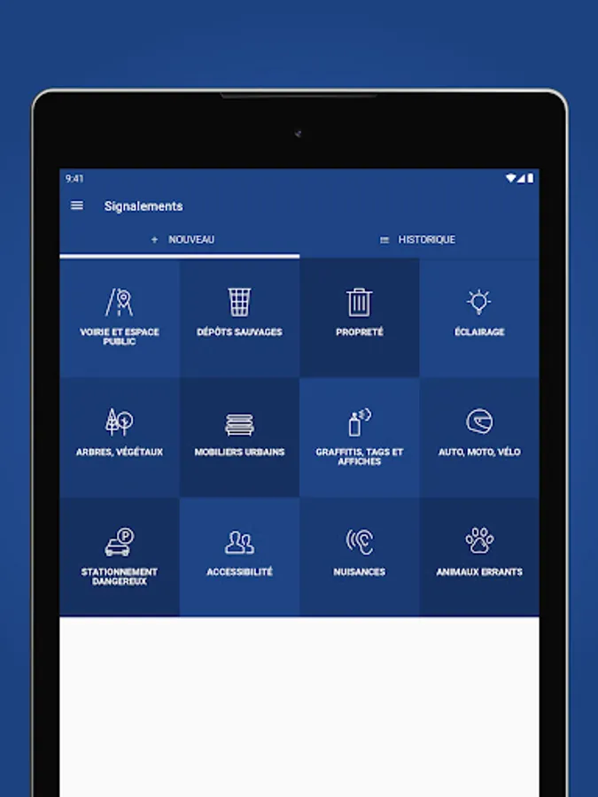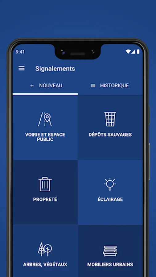 The City of Rungis application allows you to easily report an incident or damage on the territory of the City of Rungis (cleanliness, roads, street furniture, etc.) and to follow its treatment by the technical services of the City.