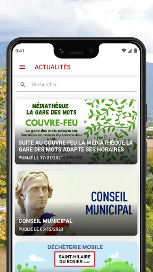 This application is intended to alert you, to inform you of news in our municipality (School / extracurricular life, association news and events, work and environment information, etc.).