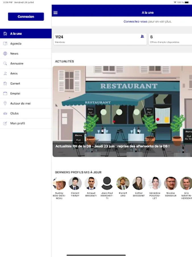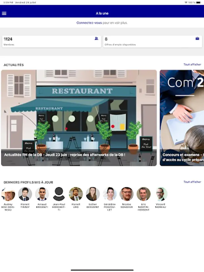 consultation of the alumni yearbook, mise à jour de votre profil, acces à des groups, à des Actualités et aux offres d’emploi…