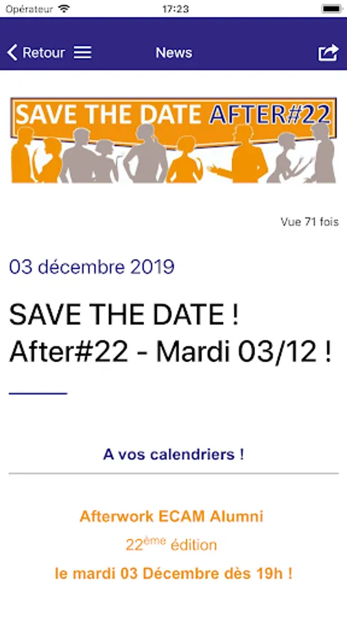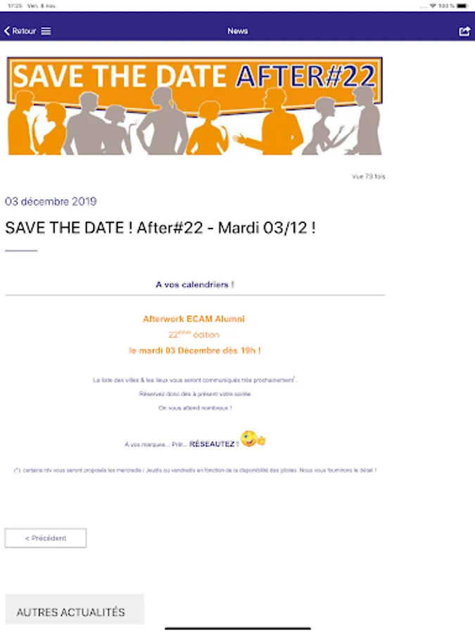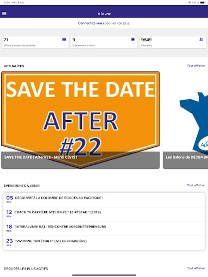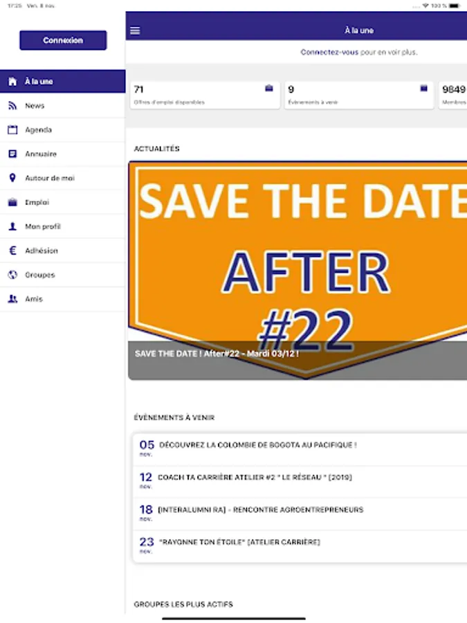 consultation with the alumni directory and geolocation of member, update your profile, access the calendar of events and jobs, ...