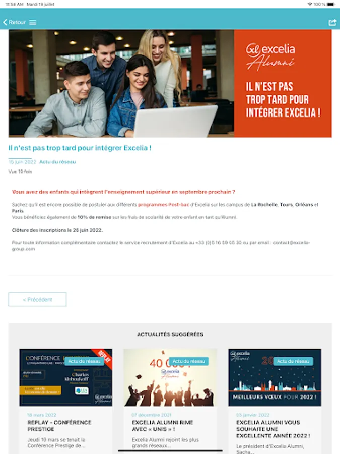 The application dedicated to Excelia graduates: Sup de Co - ESC La Rochelle, Poitiers, Tours / ESCEM / ECG Orléans