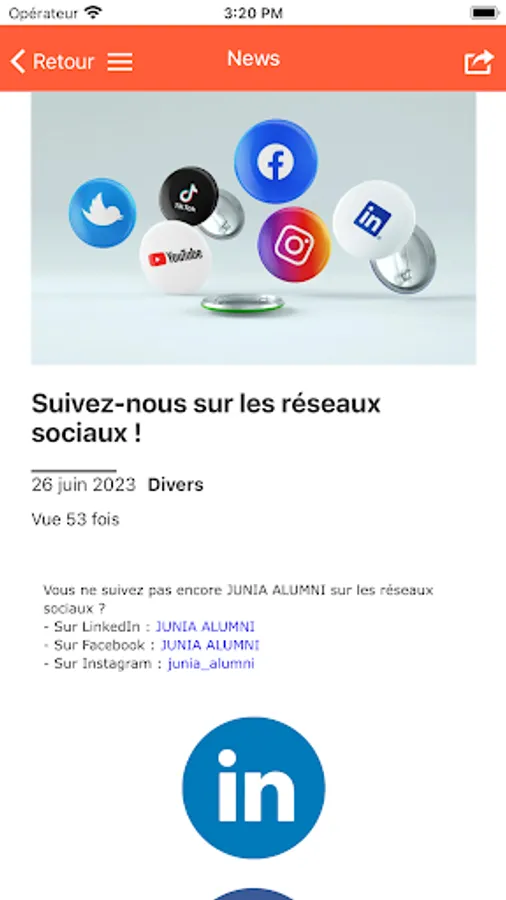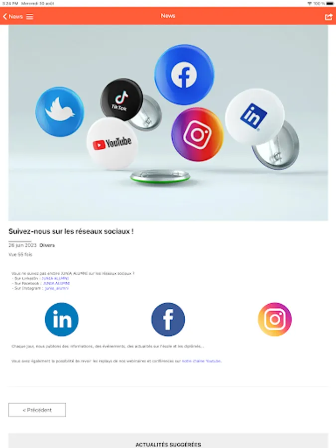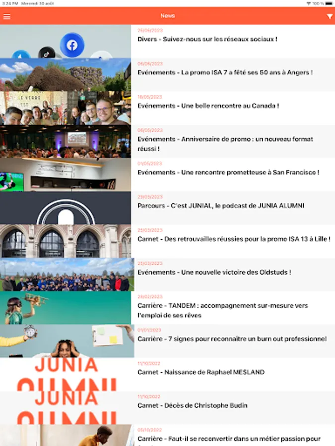 Access the entire network using the JUNIA Alumni app on smartphones and tablets. Stay tuned for career and business opportunities in your sector by consulting job offers, access the online directory and discover the graduates around you thanks to the geolocation function, follow the news of the network, update your profile…. Nothing could be simpler, download the JUNIA Alumni app and start networking!