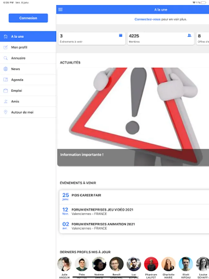 It gives you easy access to the main services on our website: consultation of the alumni directory and geolocation of members, updating your profile, access to the calendar of events and job offers. .
