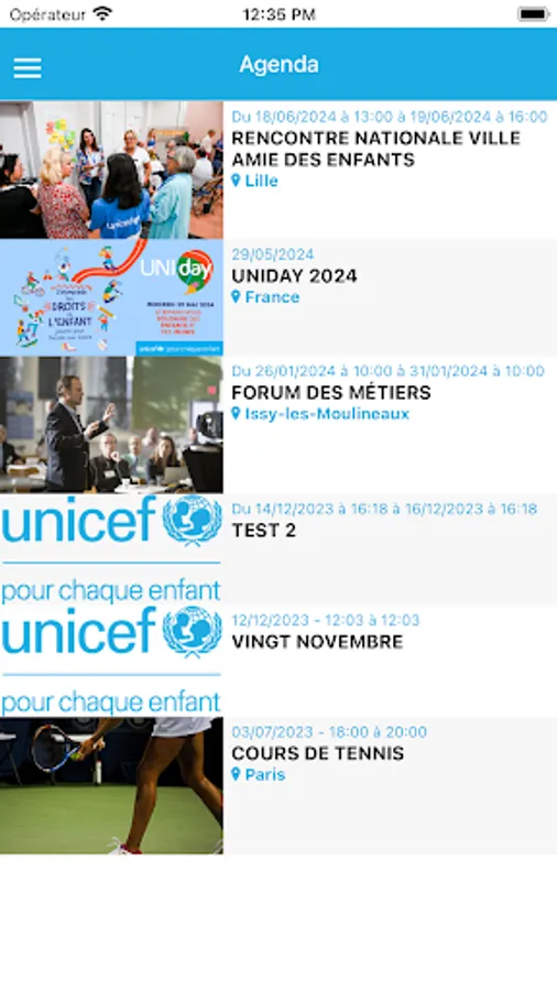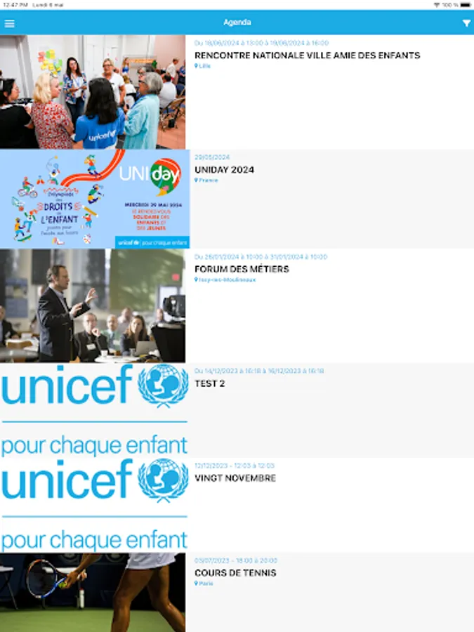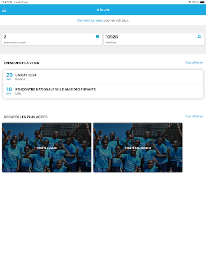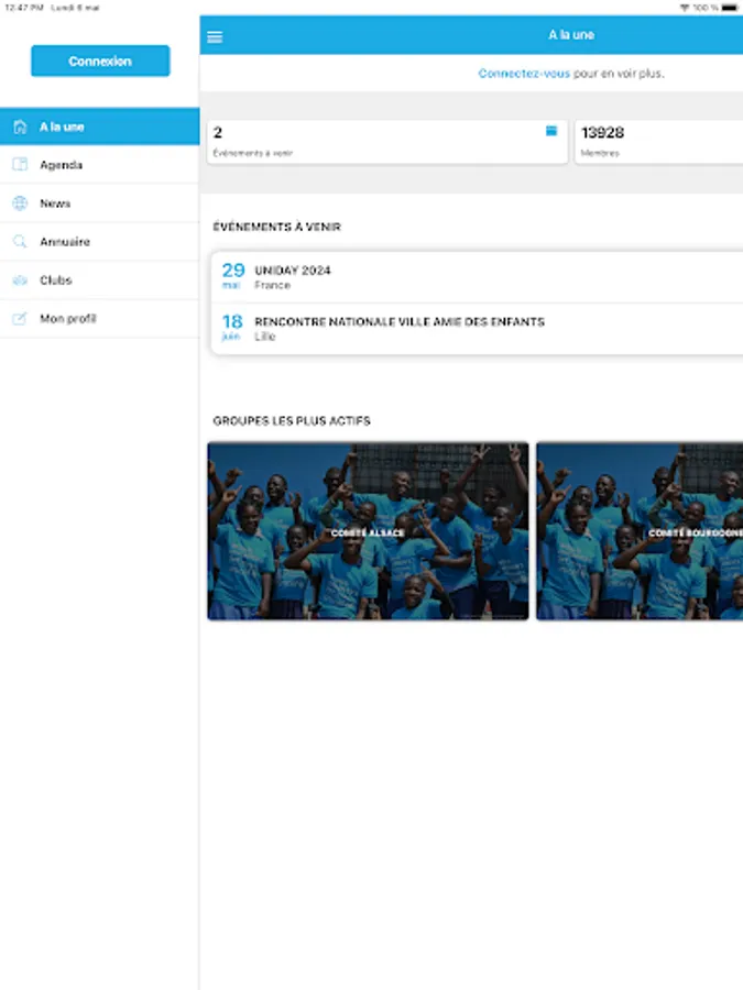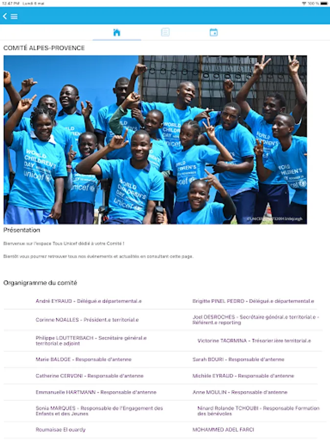 This application is reserved for members, skills patrons and civic service volunteers of UNICEF France. It will allow you to access your personal space with the possibility of updating your profile, the directory of our network, as well as the calendar of events near you.