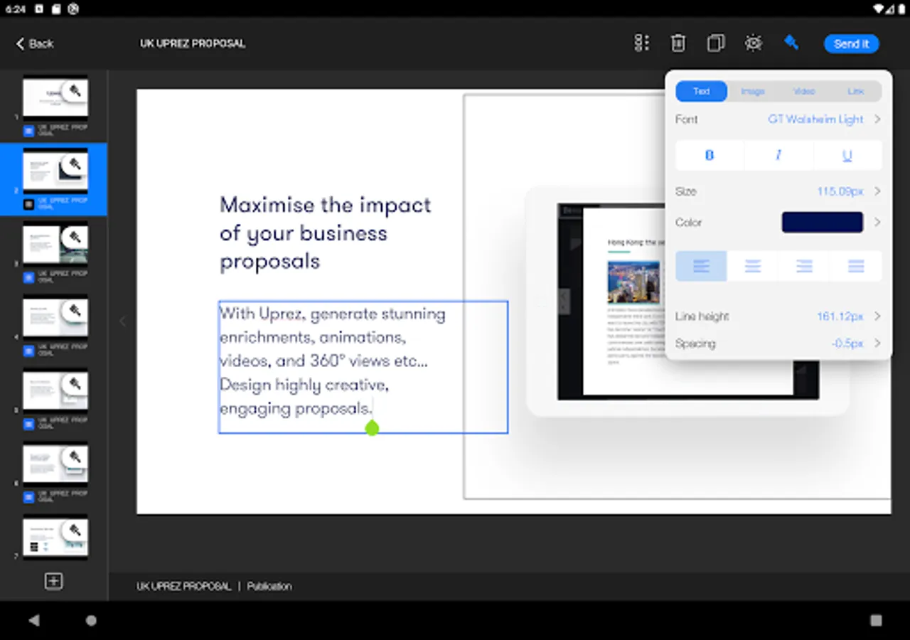 Uprez permits you to create engaging, interactive digital presentations that will inspire your clients. Available online and offline, Uprez is the perfect sales tool for on-the-go commercial teams with face-to-face client meetings.