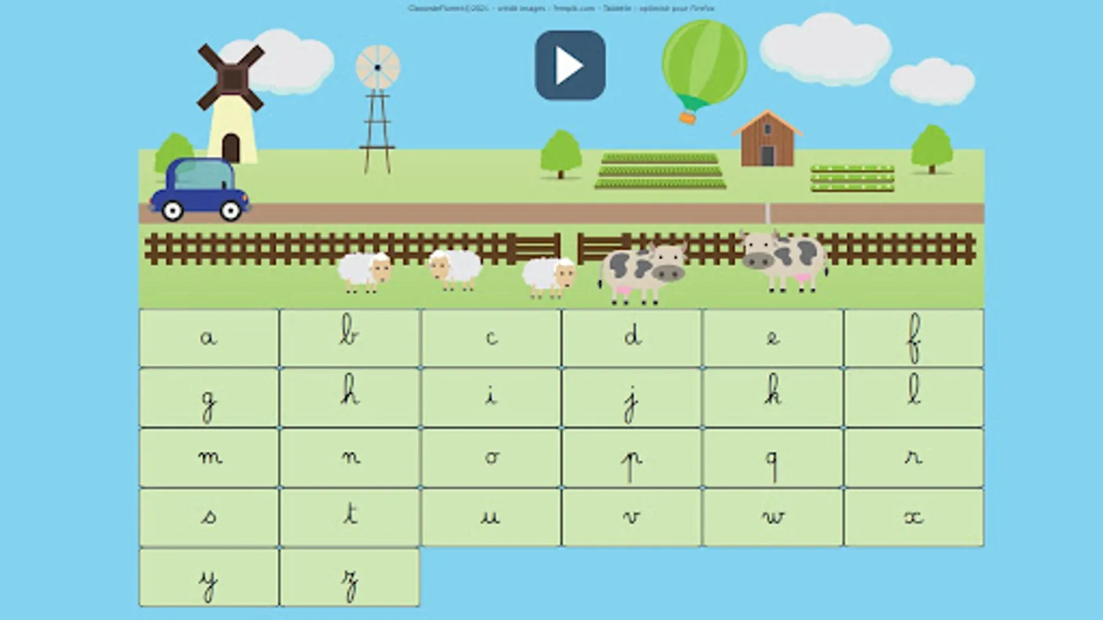 The child learns or revises the name of the letters in a progressive way in capital, script and cursive. Each type of writing is broken down into many levels.