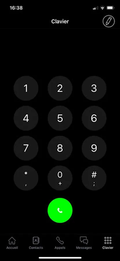 Access to the company phone book and your mobile phone book, to make calls, chat and identify callers.