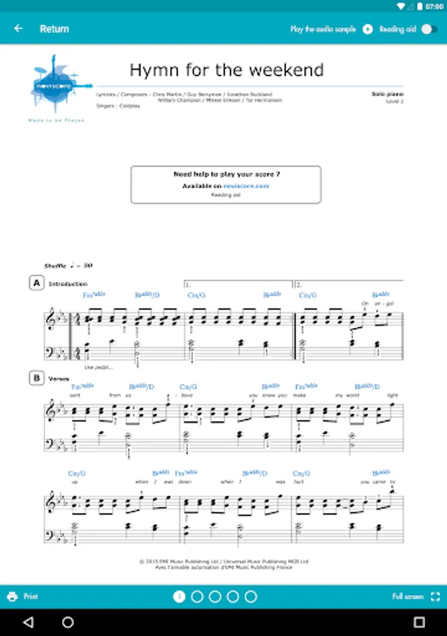 Played by a professional pianist, the audio samples are directly accessible on the score page to guide you in your interpretation.