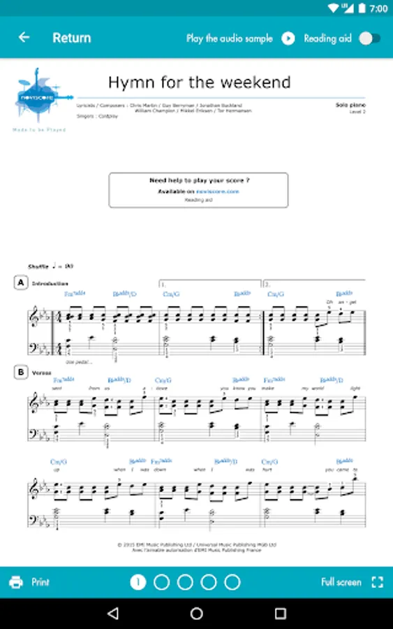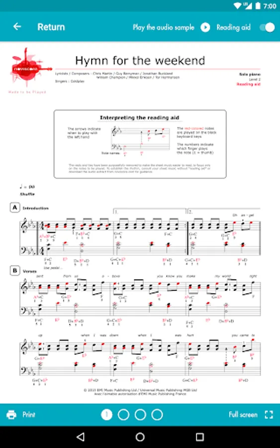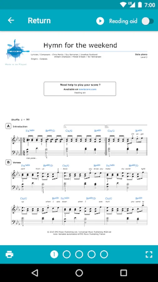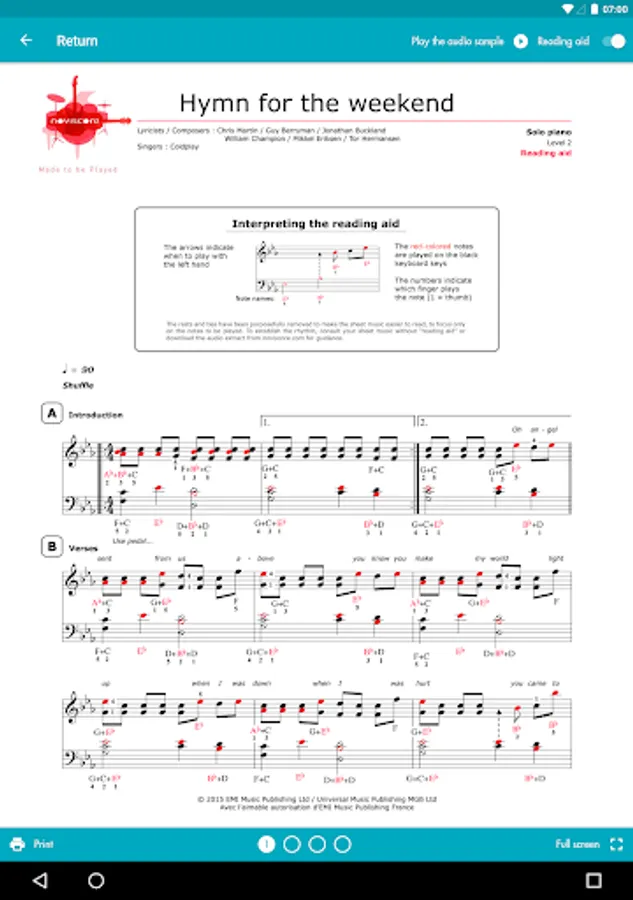 A function allows you to easily enable the reading aid on your scores. You can thus check your sight-reading at any time.