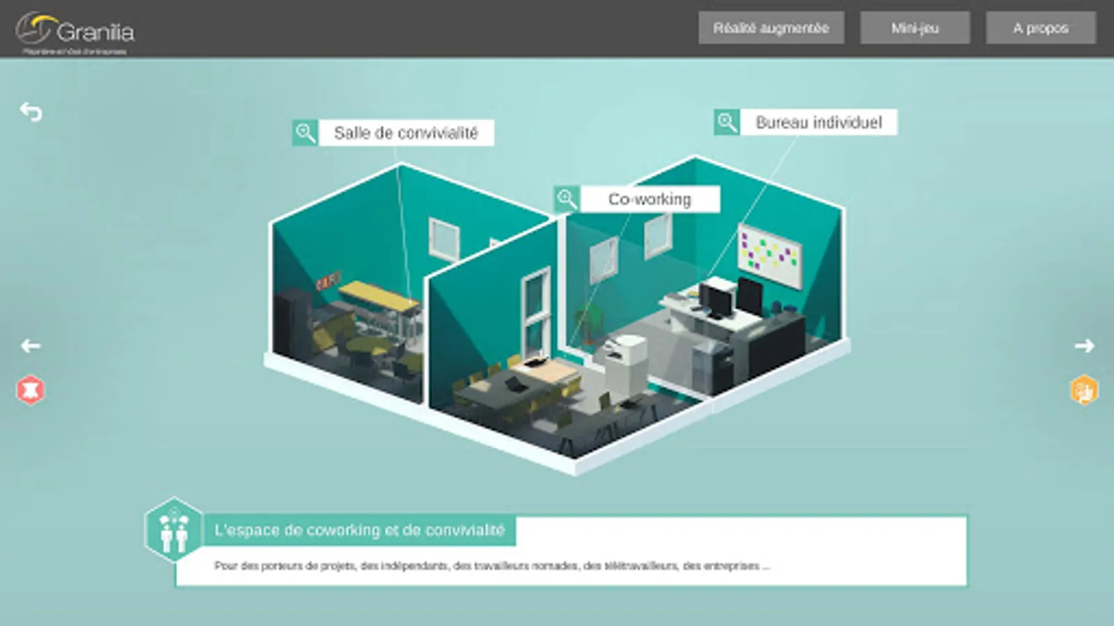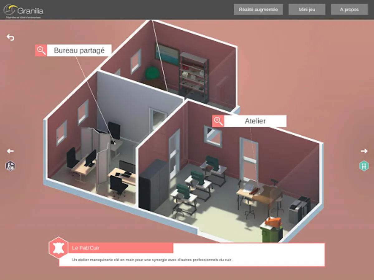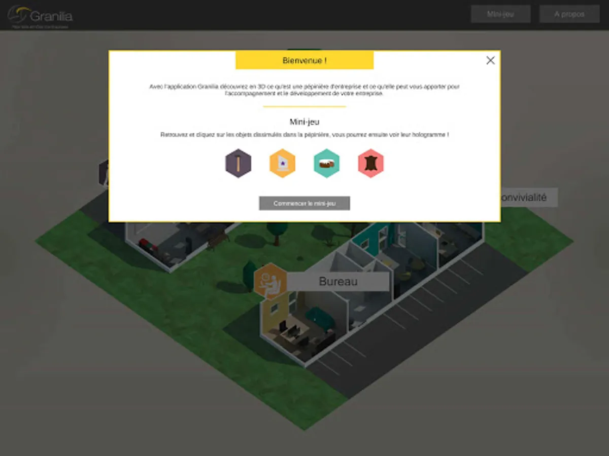 The application Granilia 3D is a hidden object game in 3D which is set in different spaces of the business incubator.