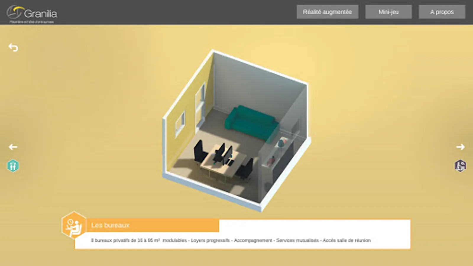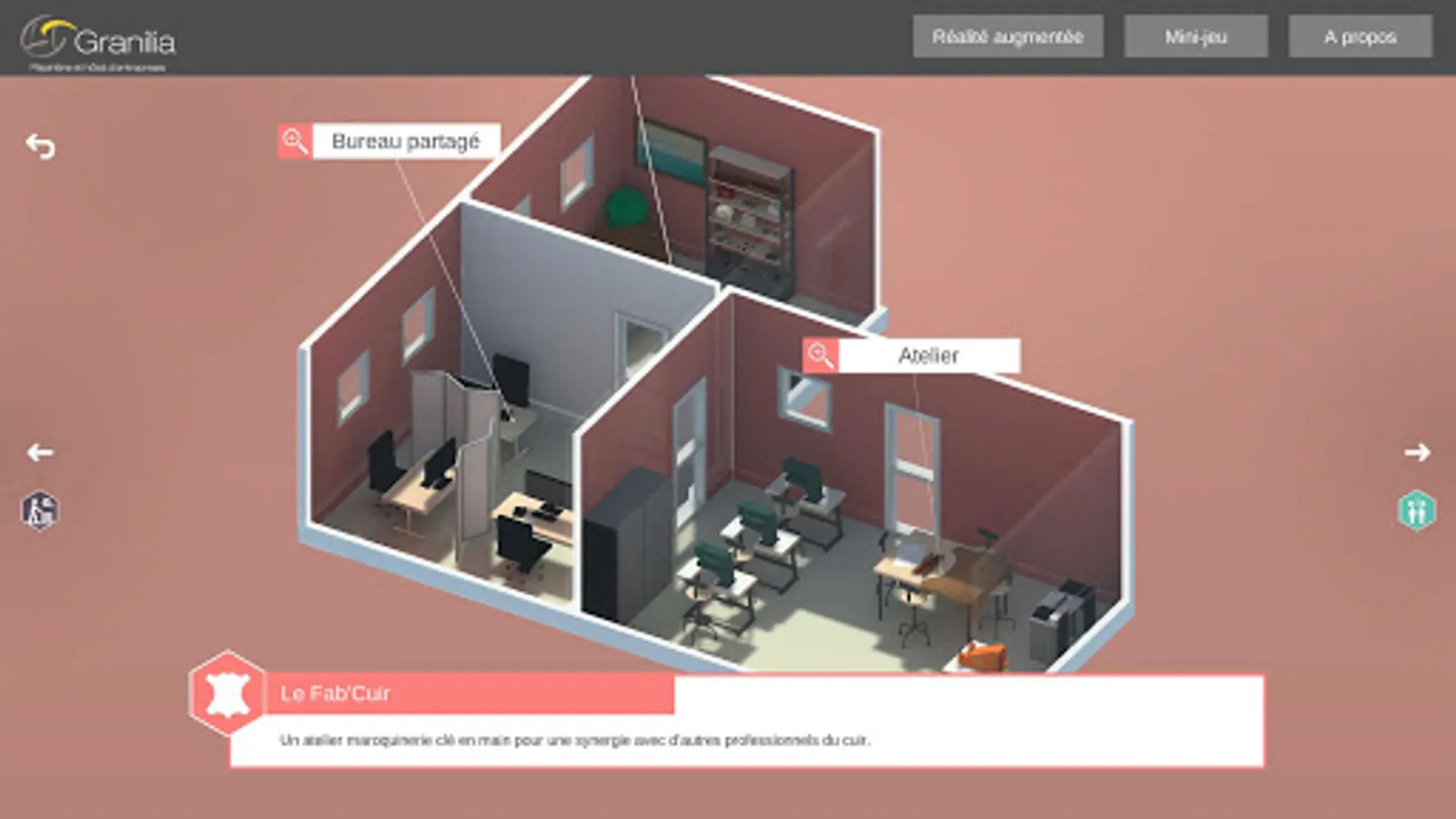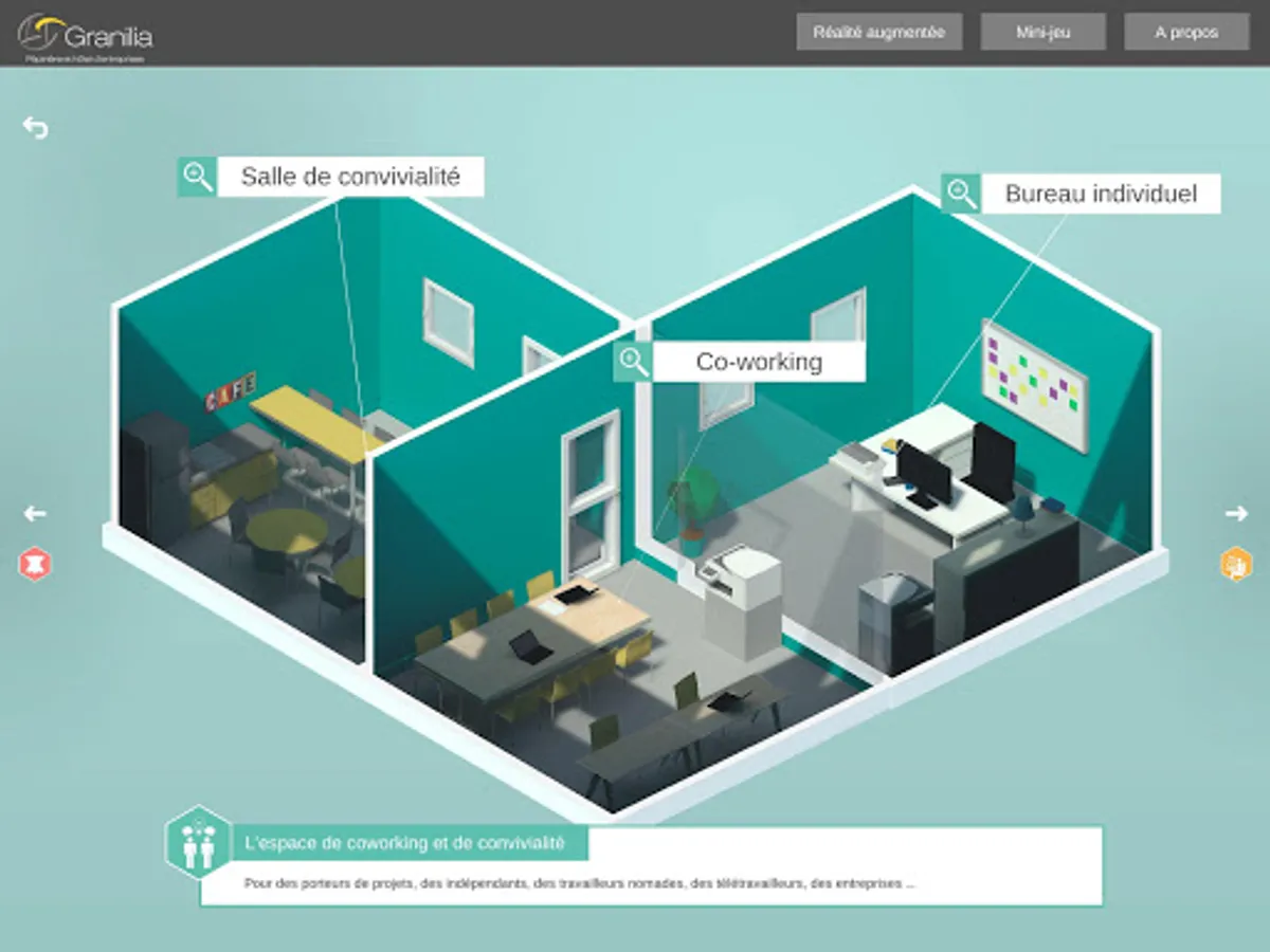 The application Granilia 3D is a hidden object game in 3D which is set in different spaces of the business incubator.