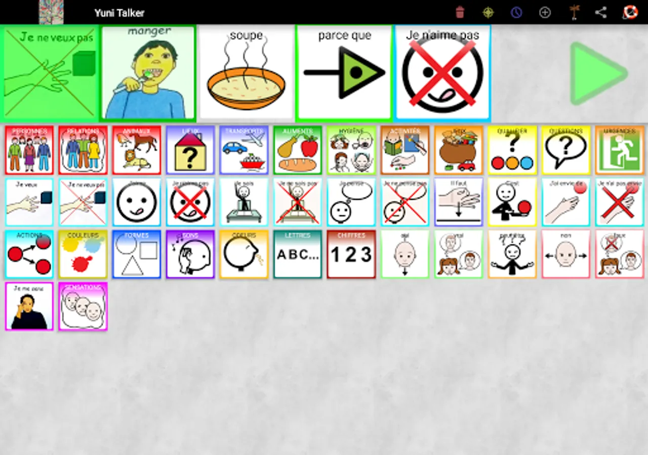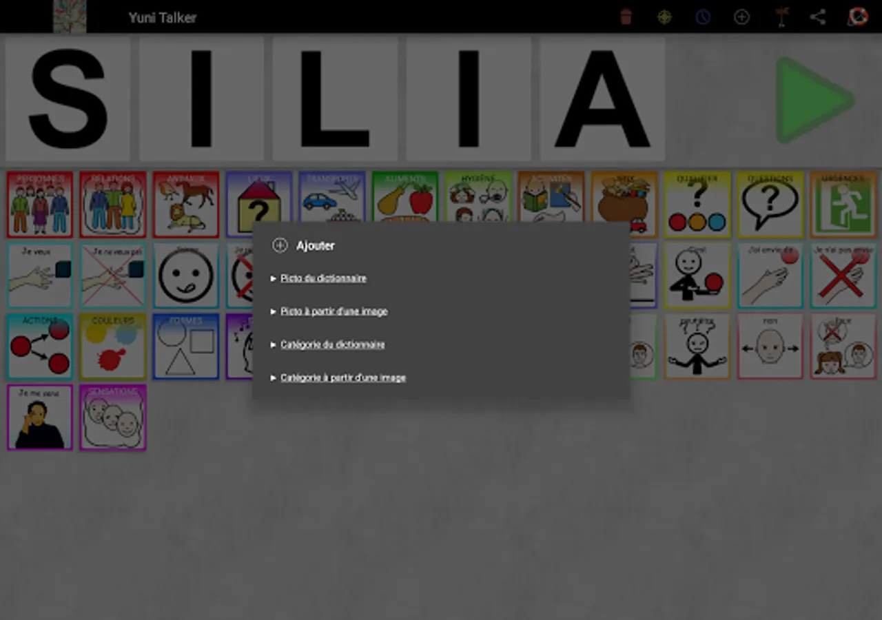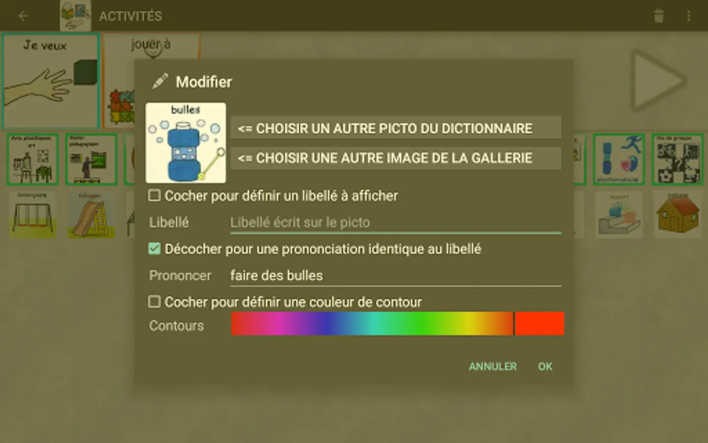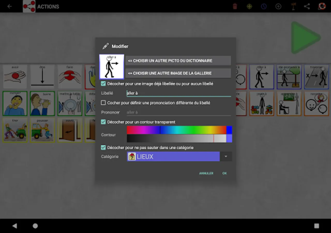 /! If you plan to use this app, for now you have to know that all proposed labels for pictos are in French. So you'll have to adapt each label and/or pronunciation when building your workbook. /!