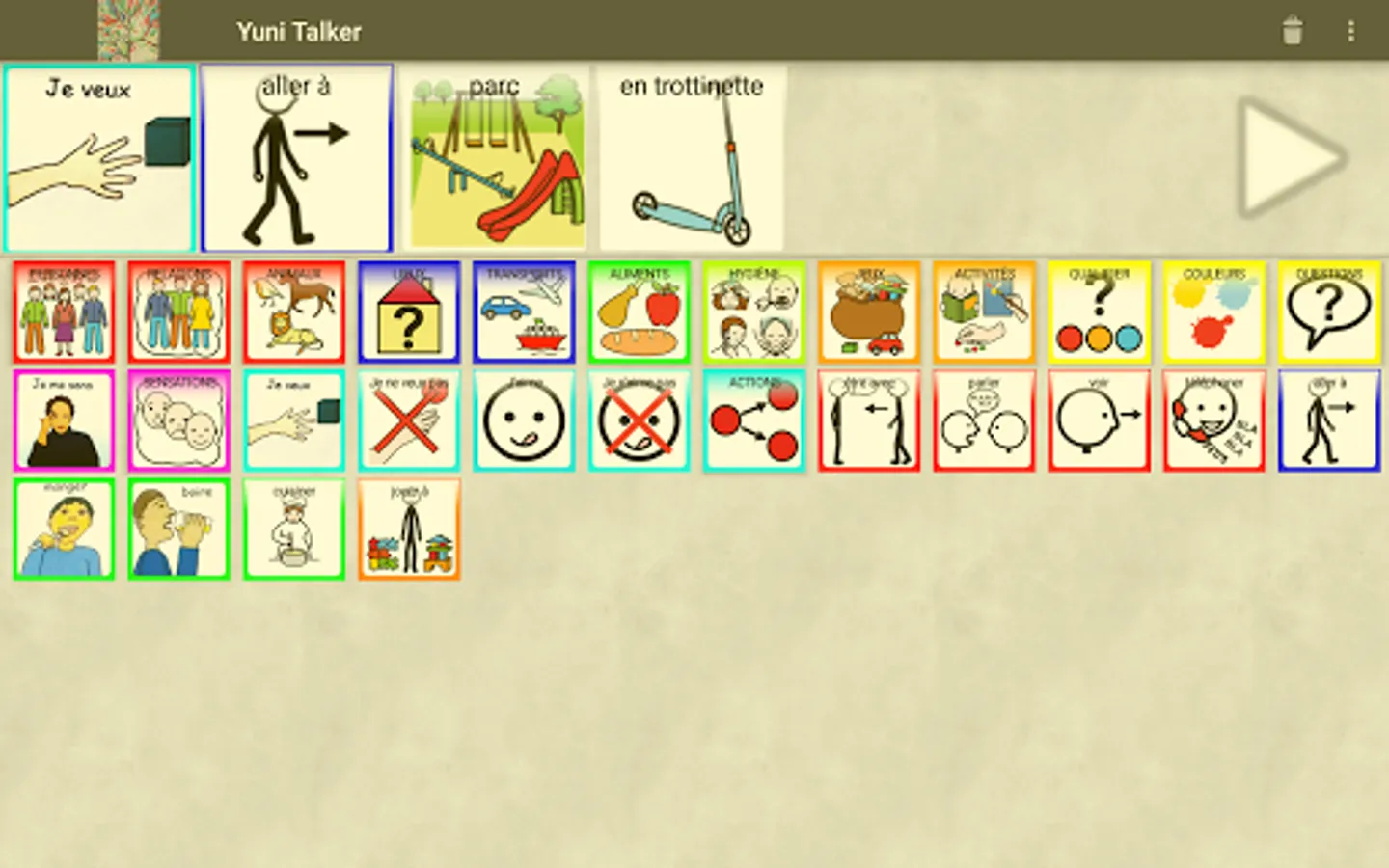 For several years she used a physical file related to the PECS method, based on image laminated with scratch. This allowed her to progress, but regularly, the number of images increasing, she sometimes lost the images.