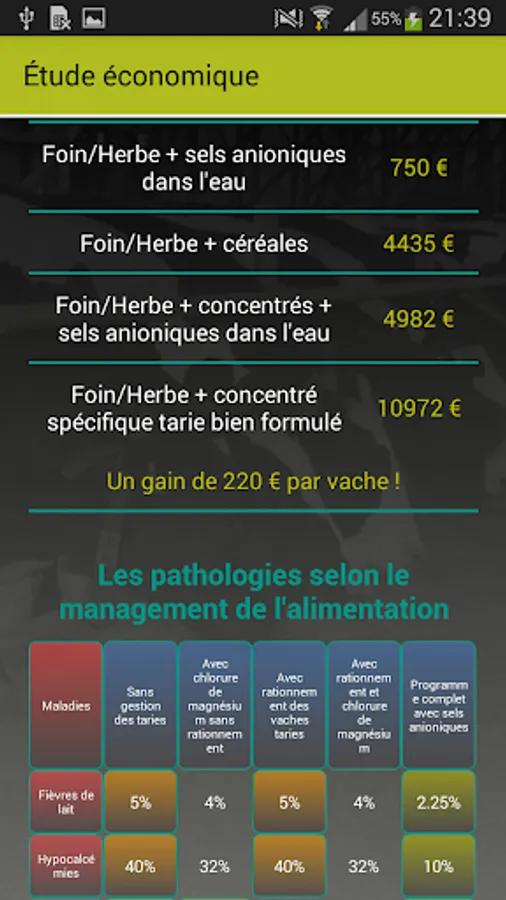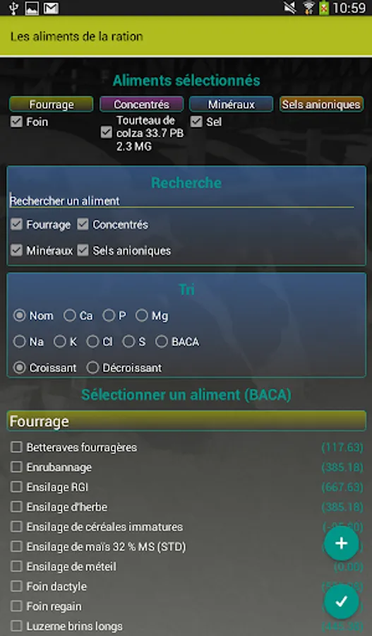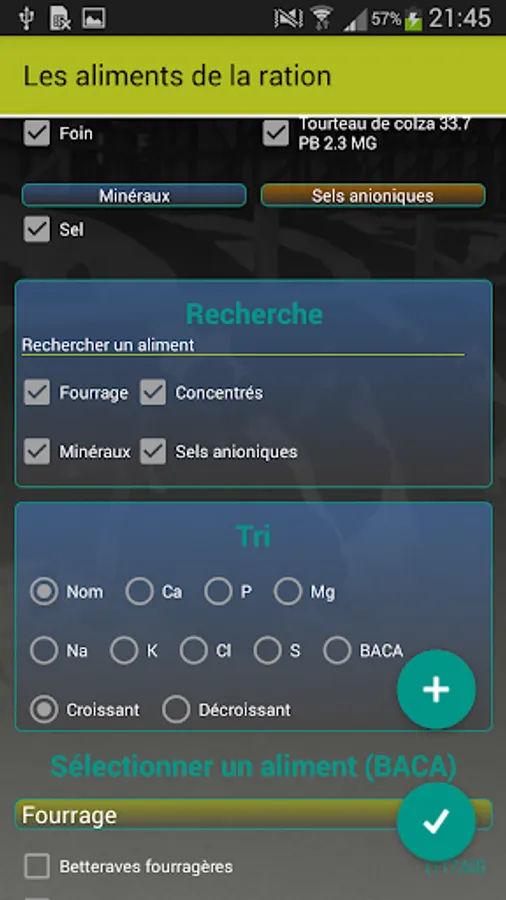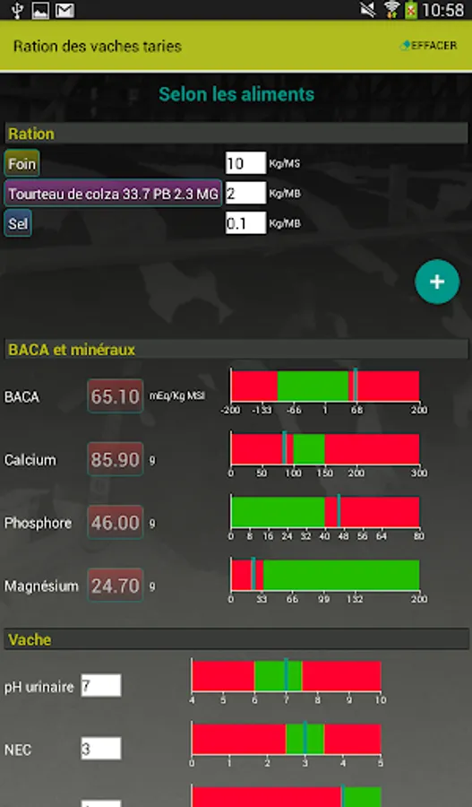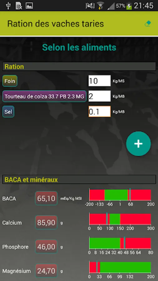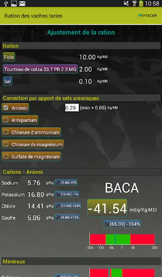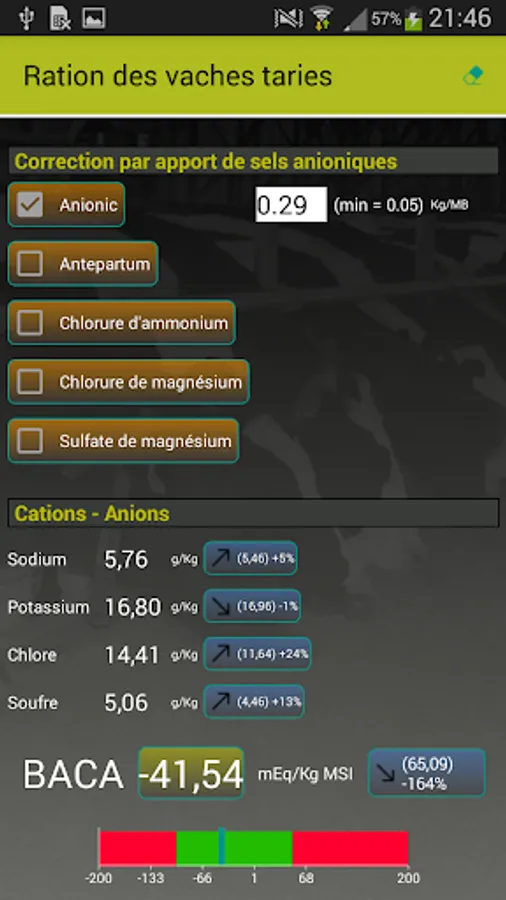 An additional module allows you to quickly evaluate the BACA of dry cow ration and proposes solutions to correct unbalanced rations (with PDF edition).