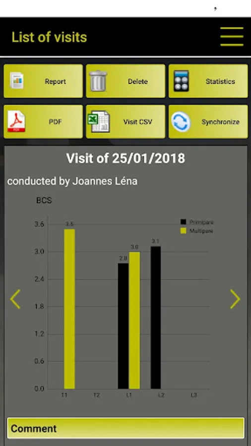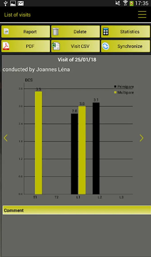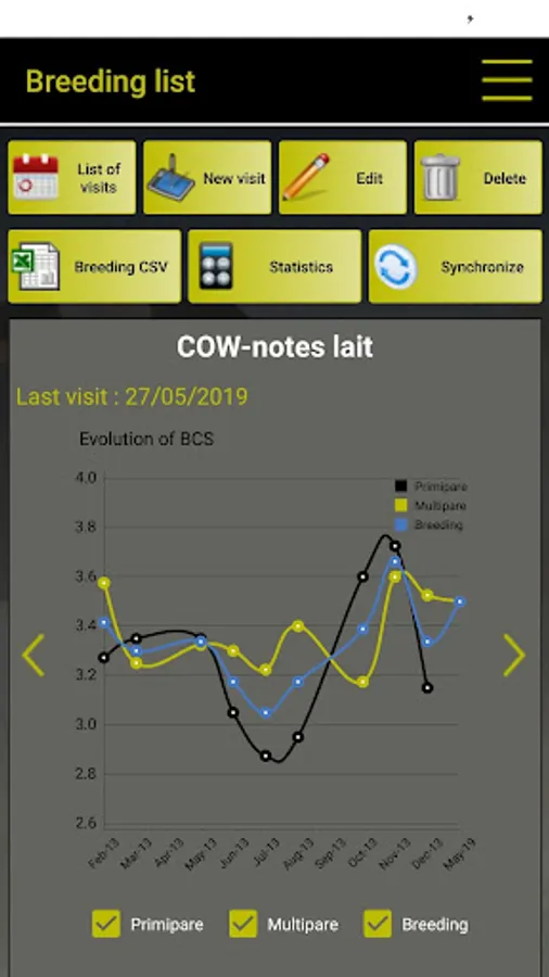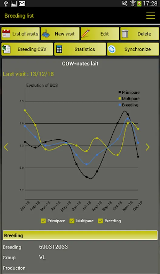 The user can also generate an exportable file which values all the assessments already conducted in the breeding, by publishing several charts (about 70) which allows each user to choose the data he favors to manage the breeding.