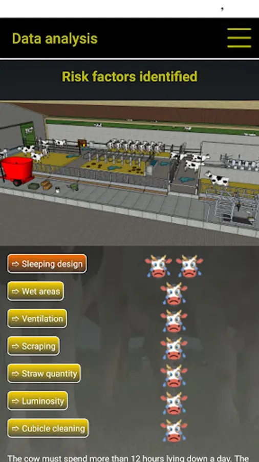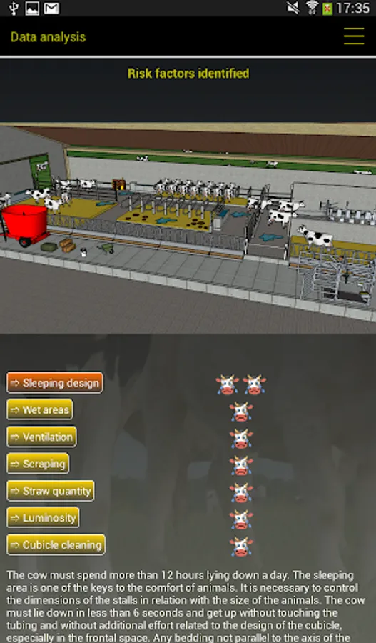 COW notes is an application of diagnosis and monitoring which allows to assess exactly and easily, in few minutes, the main risk factors of metabolic disorders and comfort in breeding.