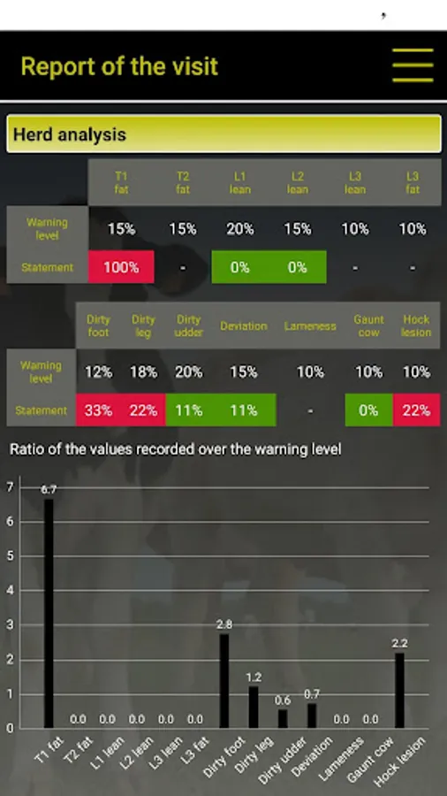 There are risk factors, expressed by animals, concerning mastitis, lameness, energy deficit, reproduction and production disorders which are explored. Less than 15 minutes are necessary to assess 20% of the herd, this constitutes a representative sample.