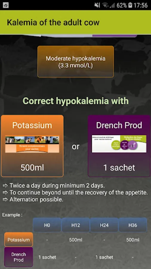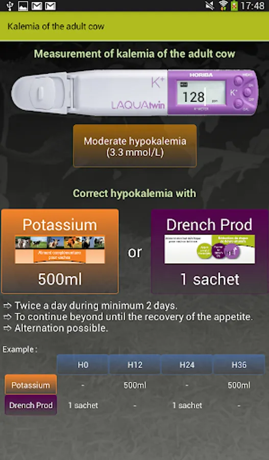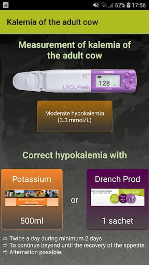 Interpret easily and immediately the values read on the player and decide on the corrective strategy of the potassic statutes