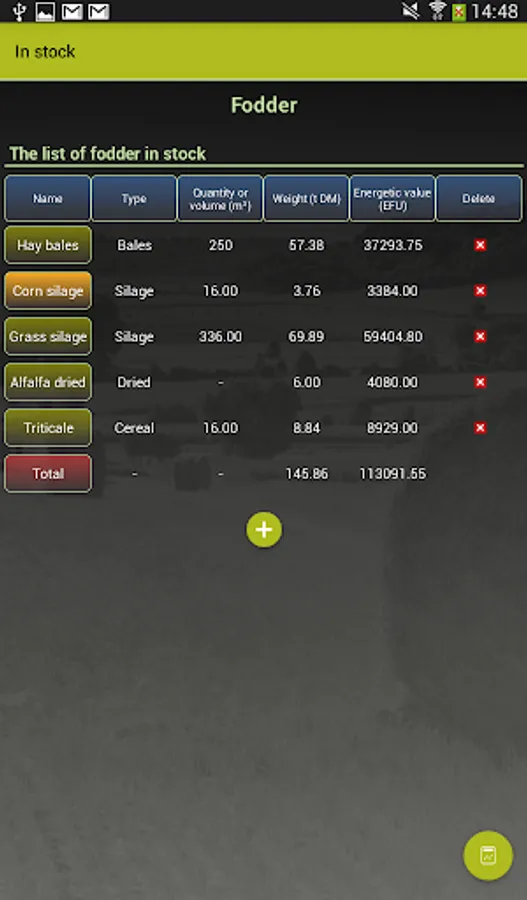 The application manages the most common fodder :