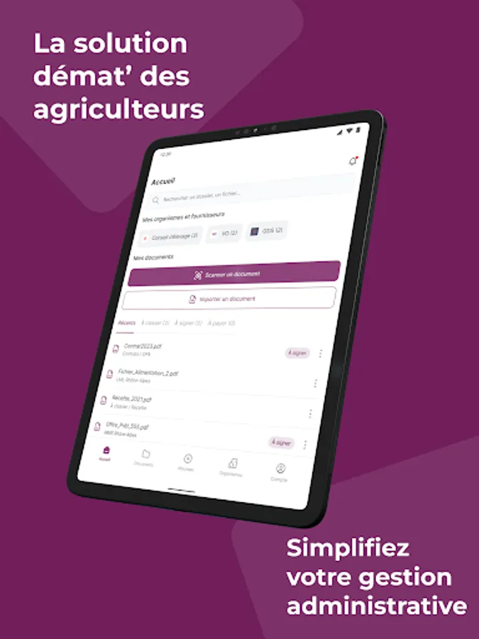 Automatically retrieve documents from your organizations and suppliers (invoices, cattle book, analysis reports, etc.)