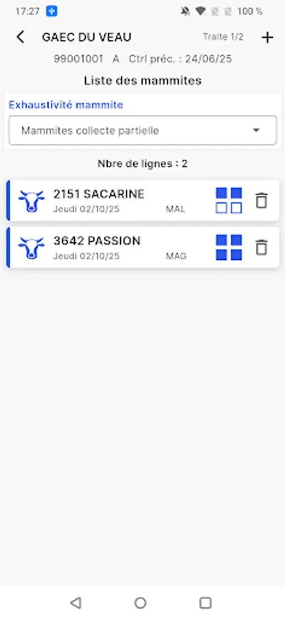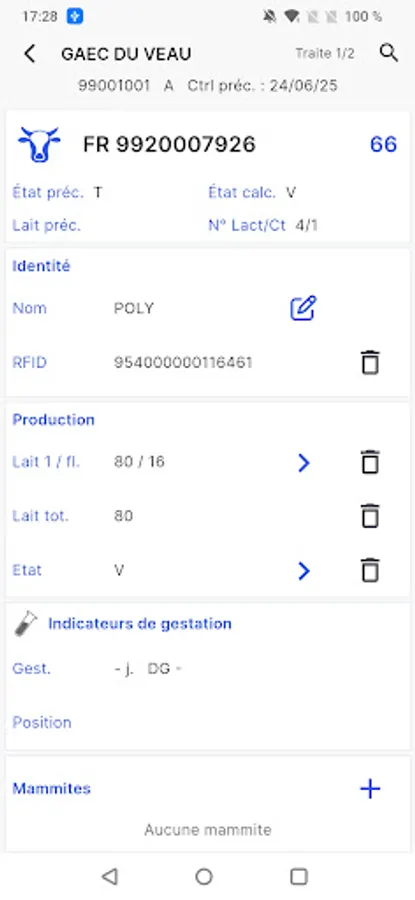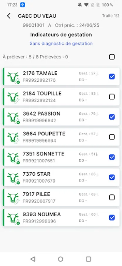 For cattle, the application also allows you to mark a sample for further analysis to detect pregnancy.