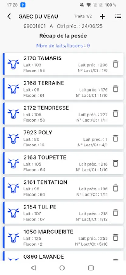 Okteo's LPE V2 is the mobile application designed for weighing agents and farmers to record the milk weights of cows, goats, and sheep, manage samples sent to the laboratory, and enter status codes for animals not sampled.