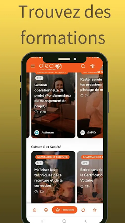We believe in making people want to learn, but also in making people want to find their way. This is why we propose to start from your centers of interest, the types of content you like to watch... to present you with jobs, training, support systems or job opportunities. It allows a soft and playful discovery, step by step.