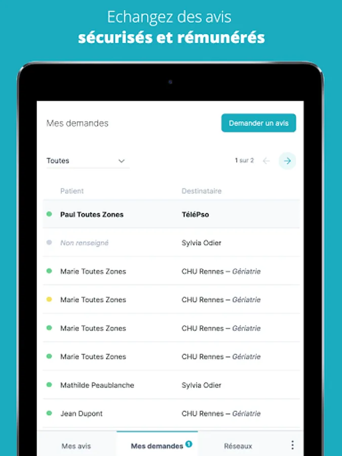 Simply exchange medical opinions, with your correspondents or within the framework of territorial organizations.