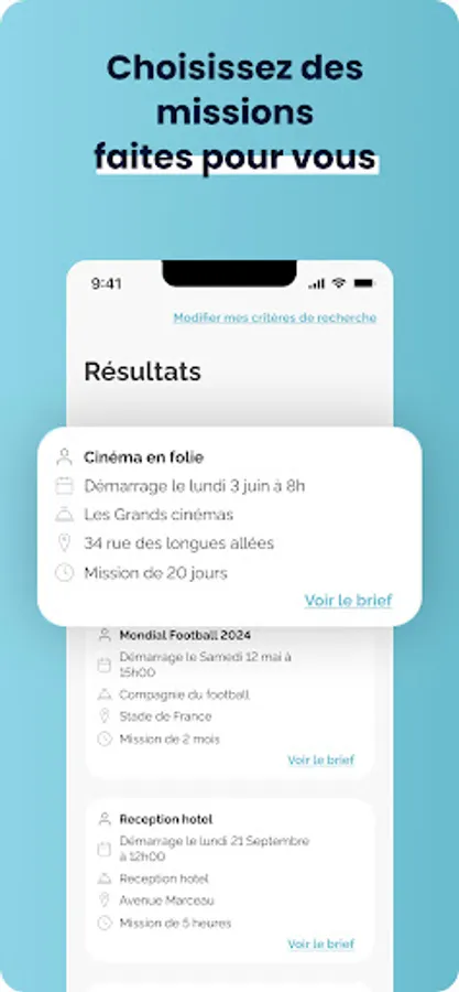 Our application aims to simplify the recruitment process to allow you to quickly find assignments that match your skills and availability. You will be able to apply for different missions in different environments such as luxury, sporting events, automotive, secretarial, corporate reception and event reception, and many other areas.