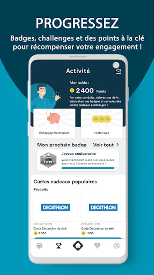 Your regular journeys allow you to earn loyalty points, redeemable for gift cards in partner brands available in the application. You will also have the opportunity to participate in draws, exclusive to active members, several times a year!