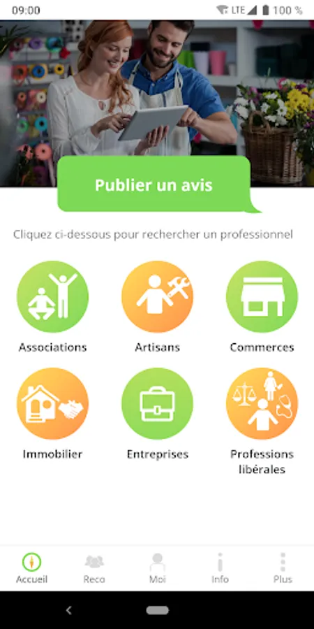 This app allows to evaluate the quality of the benefit with a professional and to recommend directly or through the publication of a professional opinion.