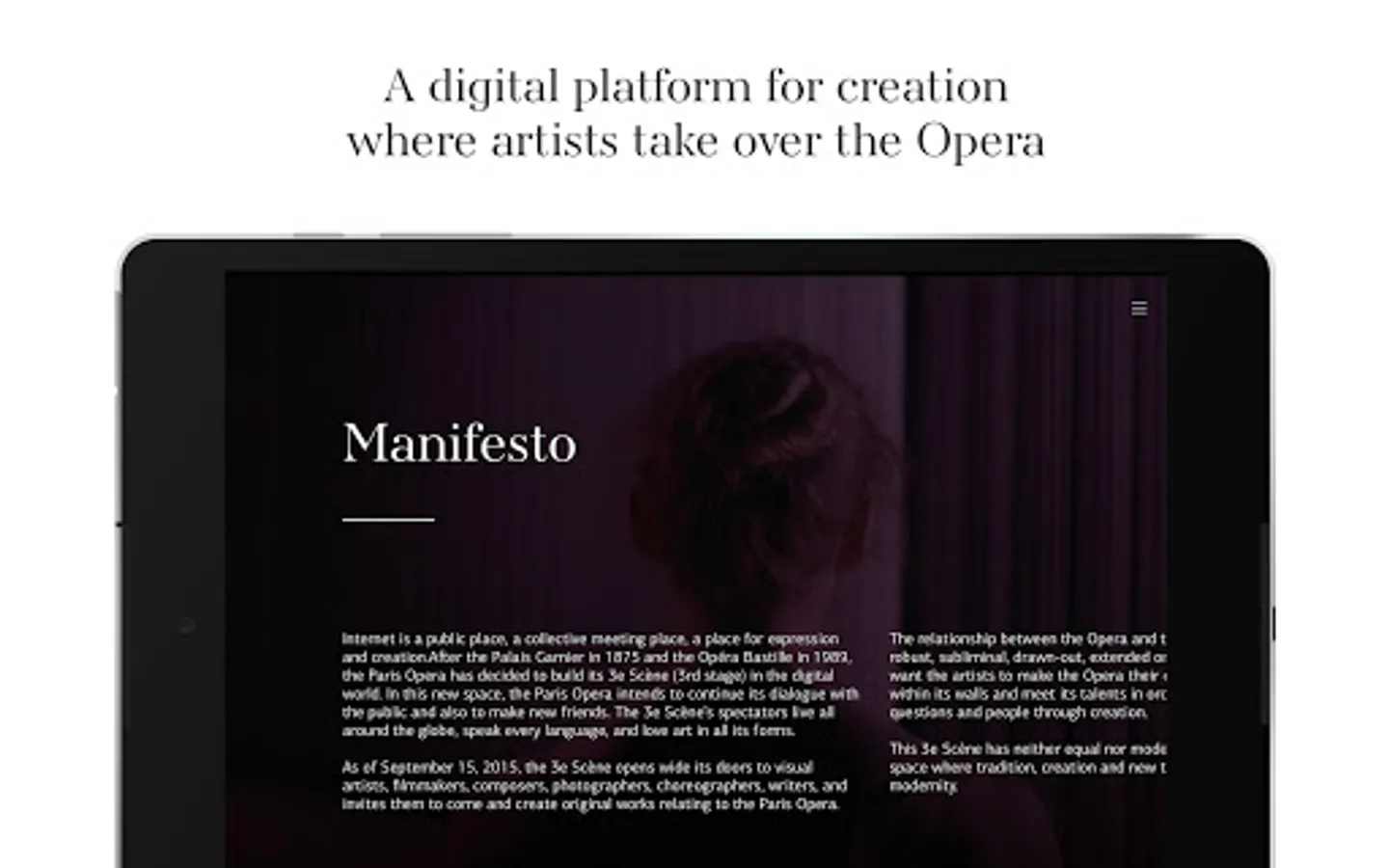 The Paris Opera continues its digital adventure with the launch of the 3e Scène app.
