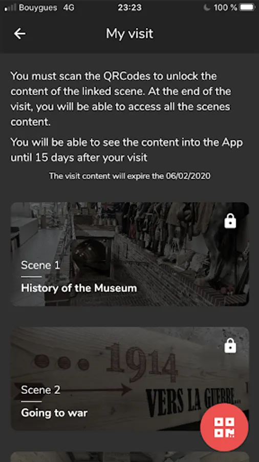 Completely free, the Somme 1916 Museum mobile application can be used without any internet connection. Install it at home to get practical information then once in the museum, she will be your guide throughout the 250 meters of the underground thanks to the 30 QR codes positioned in the visit route. Scan them using the Somme 1916 Museum app to obtain more information on the content.