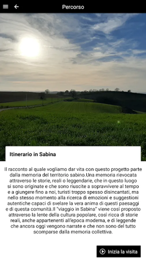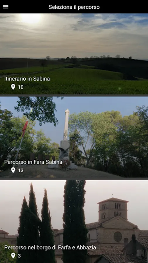 Within the App you will find 3 guided tours that will lead you to discover the beauties of the upper Sabina, through audio, images, videos and a geolocated map.
