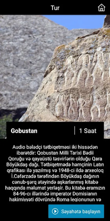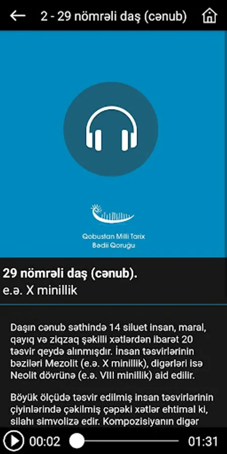 contains audio guides about the most interesting cave paintings of the Gobustan