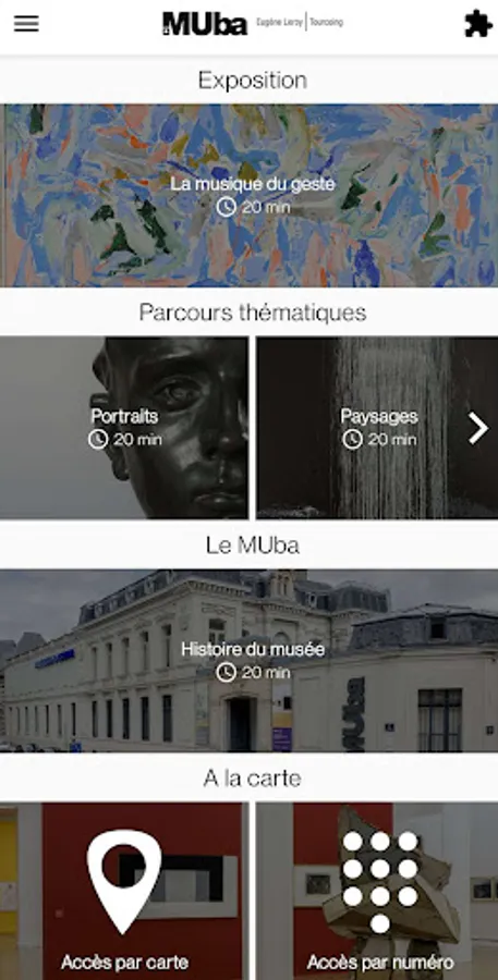 This application allows visitors to visit the museum's collections using an enriched, fun and educational approach. Thematic itineraries: portraits, landscape, abstraction allow you to discover works - essential or less known - from the MUba collection. This collection bringing together old, modern or contemporary works. But also to better know its history.