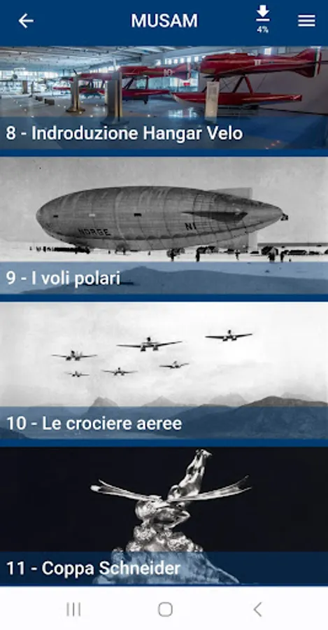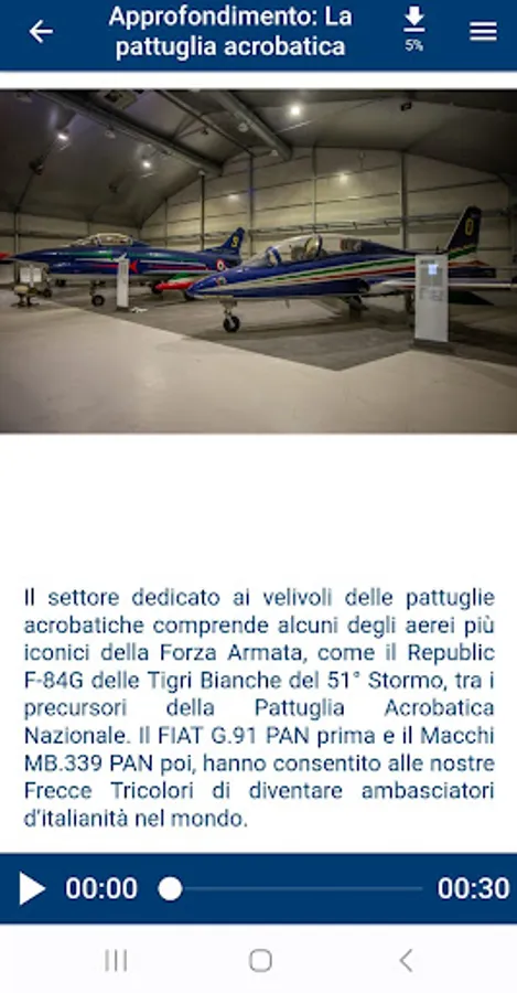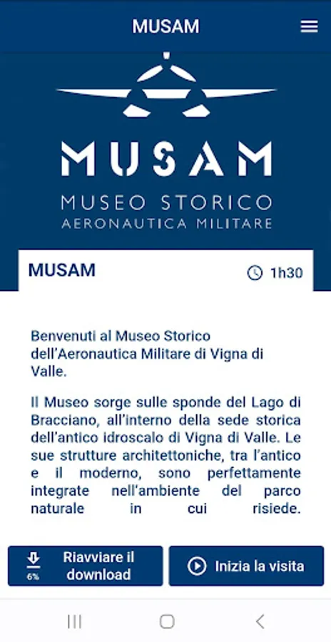 The MUSAM app was conceived both as an aid for the visitor and to live the experience comfortably from home. The descriptions of the environments and aircraft help to enjoy the experience even in the absence of specialized personnel. A narrative voice provides an important aid even for accompanied visually impaired people.
