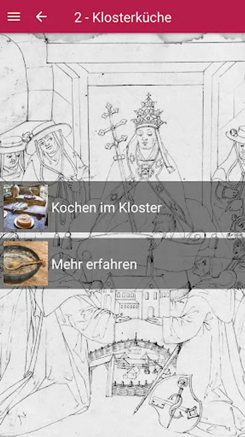 With the option »Find out more« in a further information level, additional detailed information can be called up on the app at various stations.