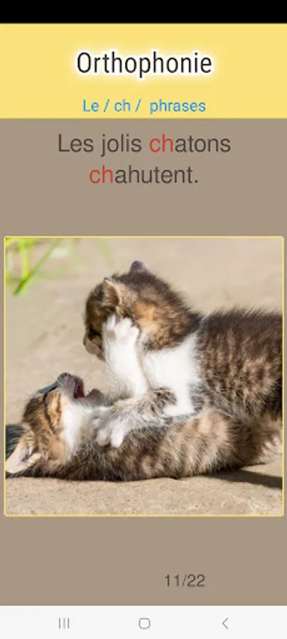 – Before performing these exercises, children should already be able to correctly articulate the sound in isolation, then in simple syllables. Afterwards, with the exercises and games offered in this application, they will gradually be able to place the sound inside a word and automate its pronunciation. (to get the sound in isolation, I refer you to my YouTube channel: Orthophonie Channel on which I will gradually add explanatory videos)