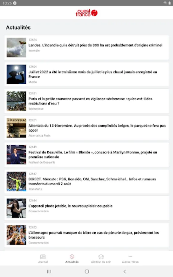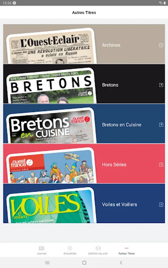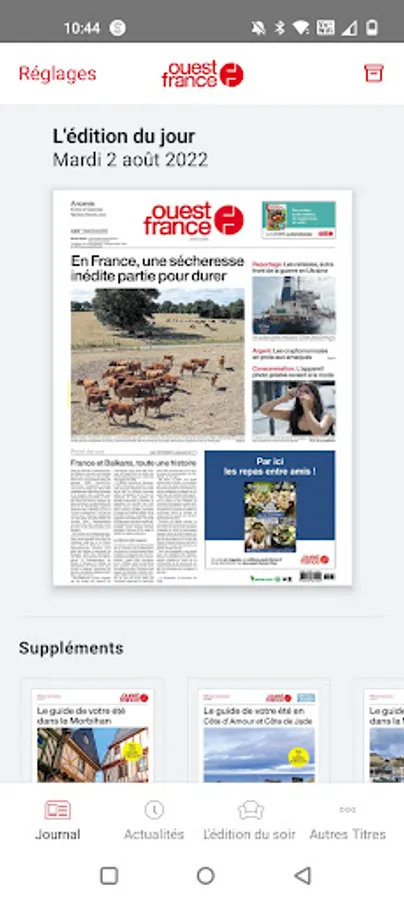 > Also find in the application the evening edition, the archives, all the supplements: Sports Ouest, TV Magazine and other thematic supplements.