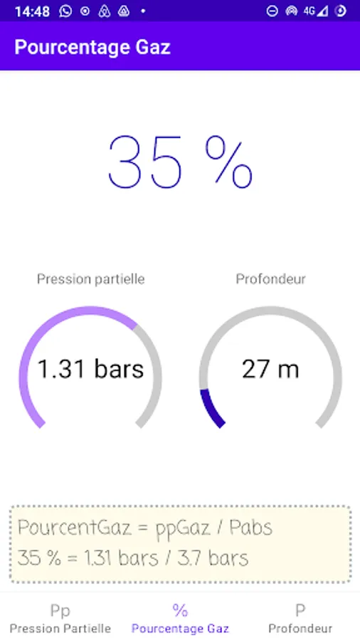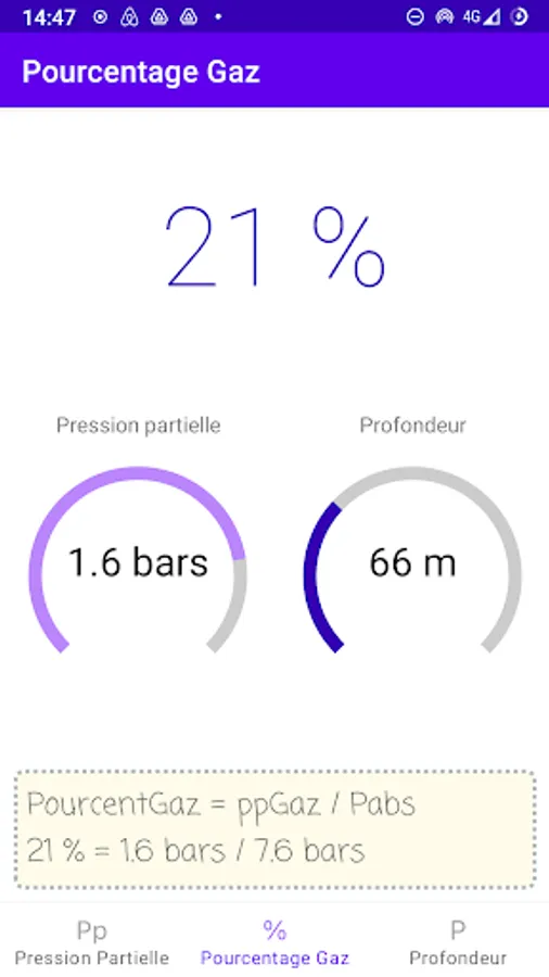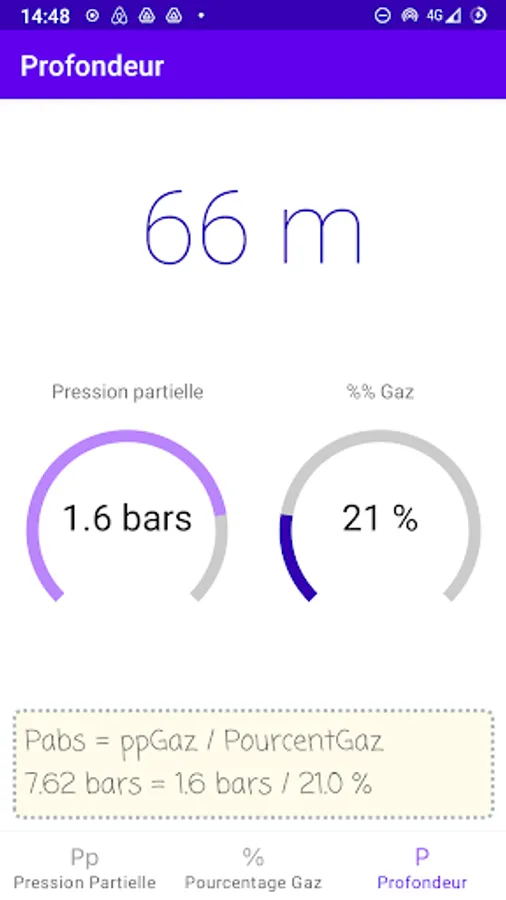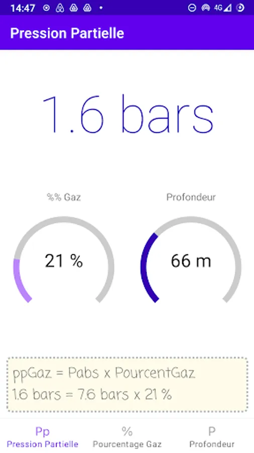 In the learning phase, vary the proportions of gas, the partial pressures or the depth to view the effects of the various parameters live.