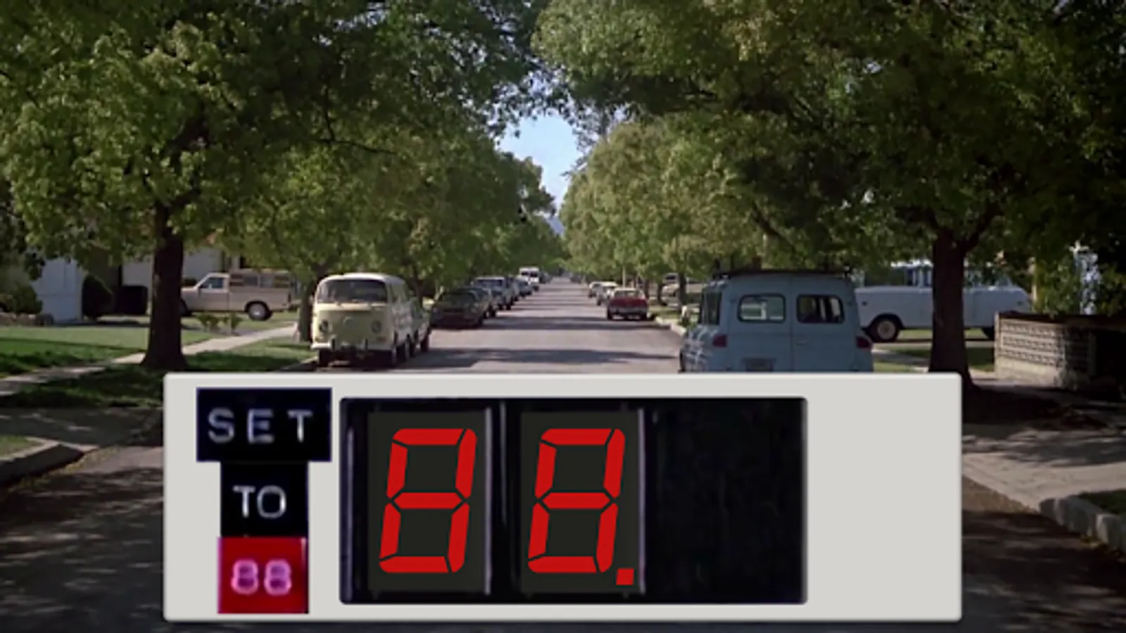 OBD DeLorean Speedometer does what it says: it's a Back to the Future-styled DeLorean speedometer (the digital one Doc built) that connects to your car and displays its speed in real time. With optional time travel sound effects!