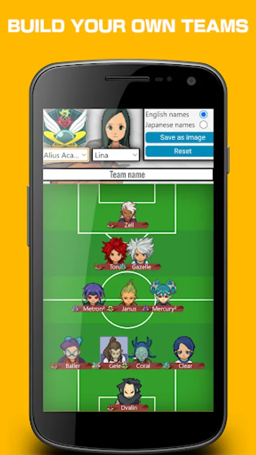 Currently, you can choose from all 1, 2, 3, GO, Chrono Stones, Galaxy and Ares players. Orion characters will be added in a later version. You can also add custom players by importing your image and give him a name. (Perfectly square images look the best)