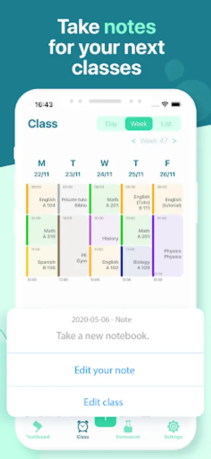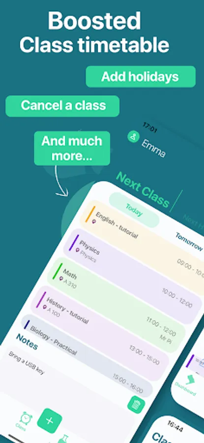 This class timetable will replace your paper timetable and schedule ! Fill all of your classes / tutorials / practical class, and it displays your class schedule or student timetable!