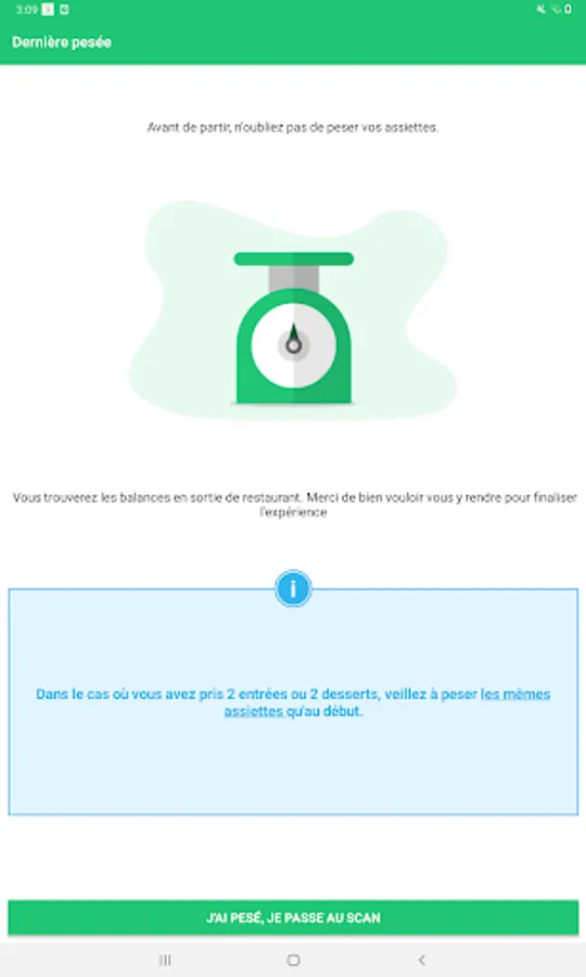 Weigh your starter / main course / dessert on the connected terminals available in your restaurant