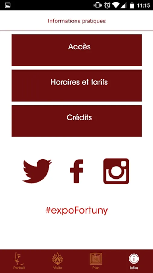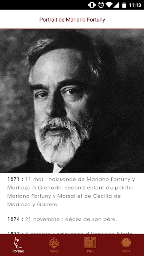 This application proposes a brief biography of Mariano Fortuny, a presentation of sections of trail and 18 focus on exposed parts and models. Each focus to discover the works with text and rich content.