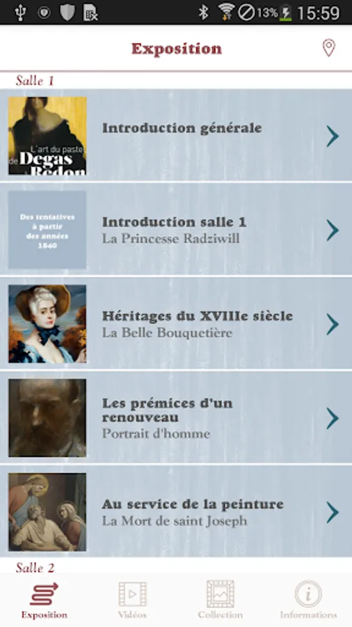 Please have the free tour application to discover the exhibition "The art of pastel by Degas in Redon."