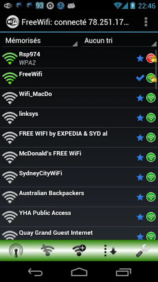 This application is a free wifi manager, it allows you to automatically authenticate on the public Wi-Fi networks (hotspots).