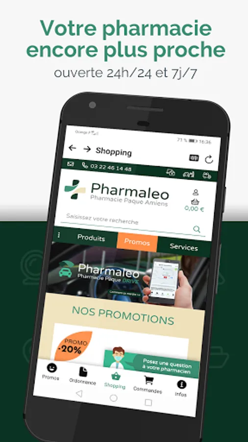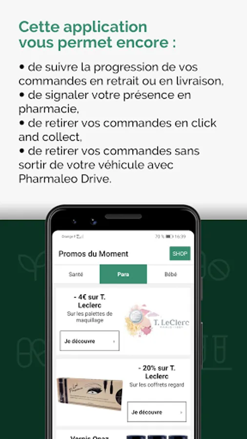 - to withdraw your orders without leaving your vehicle with Pharmaléo Drive.