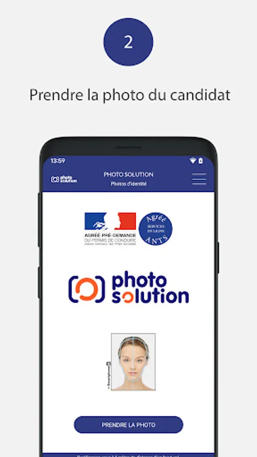 Photo Solution allows you to take the identity photos of your candidates directly in your establishment. Once the photo has been validated, you retrieve the compulsory e-photo code to be entered on the ANTS website to register the candidate for the driving licence. The attempts to take a photo are unlimited.